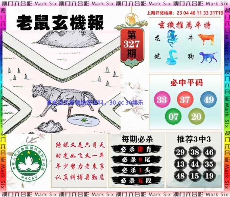 | 327期:五尾中特╠23468╣开:蛇37错 |